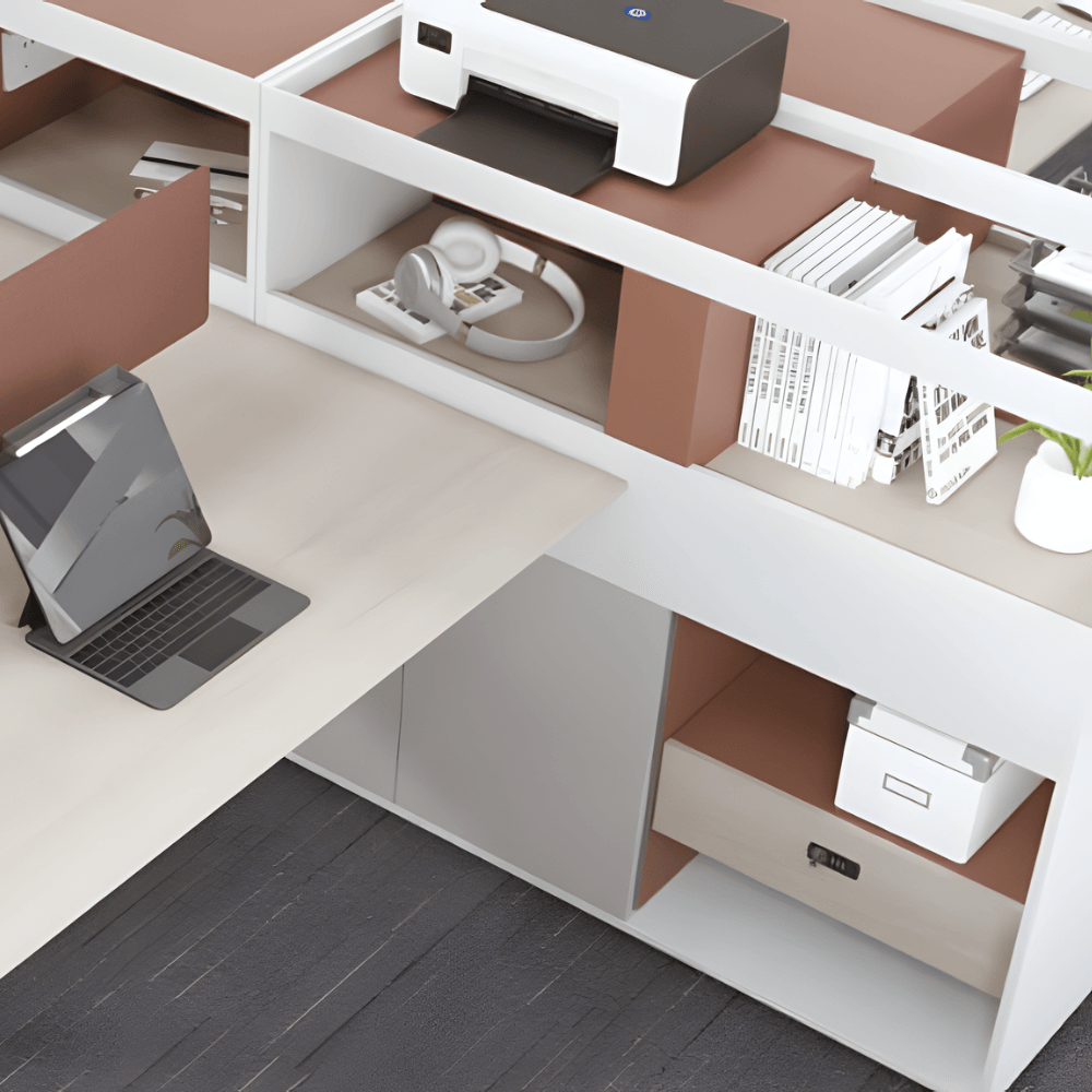 Idéal pour les bureaux ouverts, les espaces collaboratifs ou les zones de coworking, ce poste de travail favorise la productivité tout en offrant un cadre agréable. Sa conception modulaire permet d’adapter les configurations selon les besoins des équipes. Parfait pour les entreprises souhaitant allier fonctionnalité et esthétique.