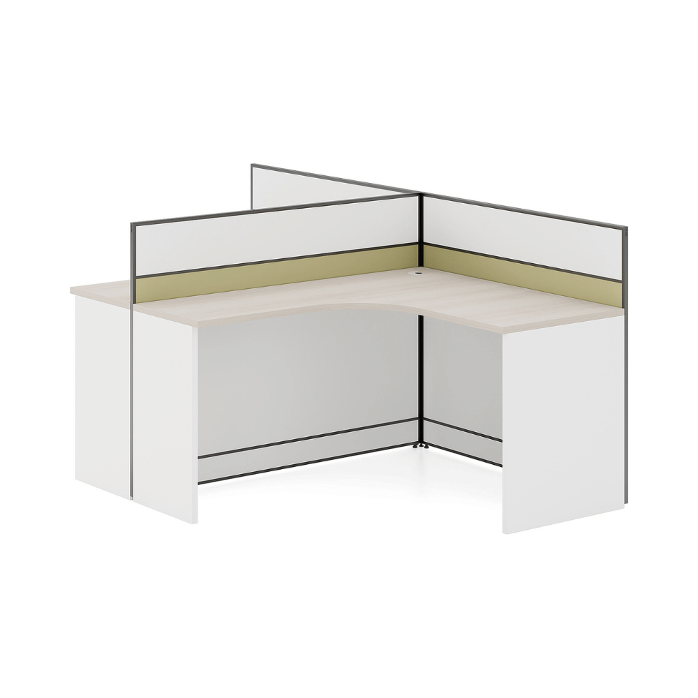 Le poste de travail Sparken-C en L est conçu pour optimiser l’espace de travail tout en offrant une séparation efficace entre les utilisateurs.