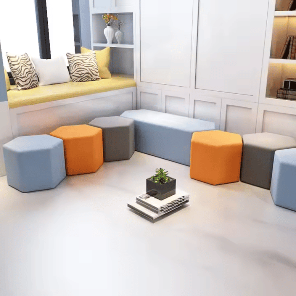 Le pouf lounge Hex hexagonal est un mobilier polyvalent, idéal pour les espaces professionnels.