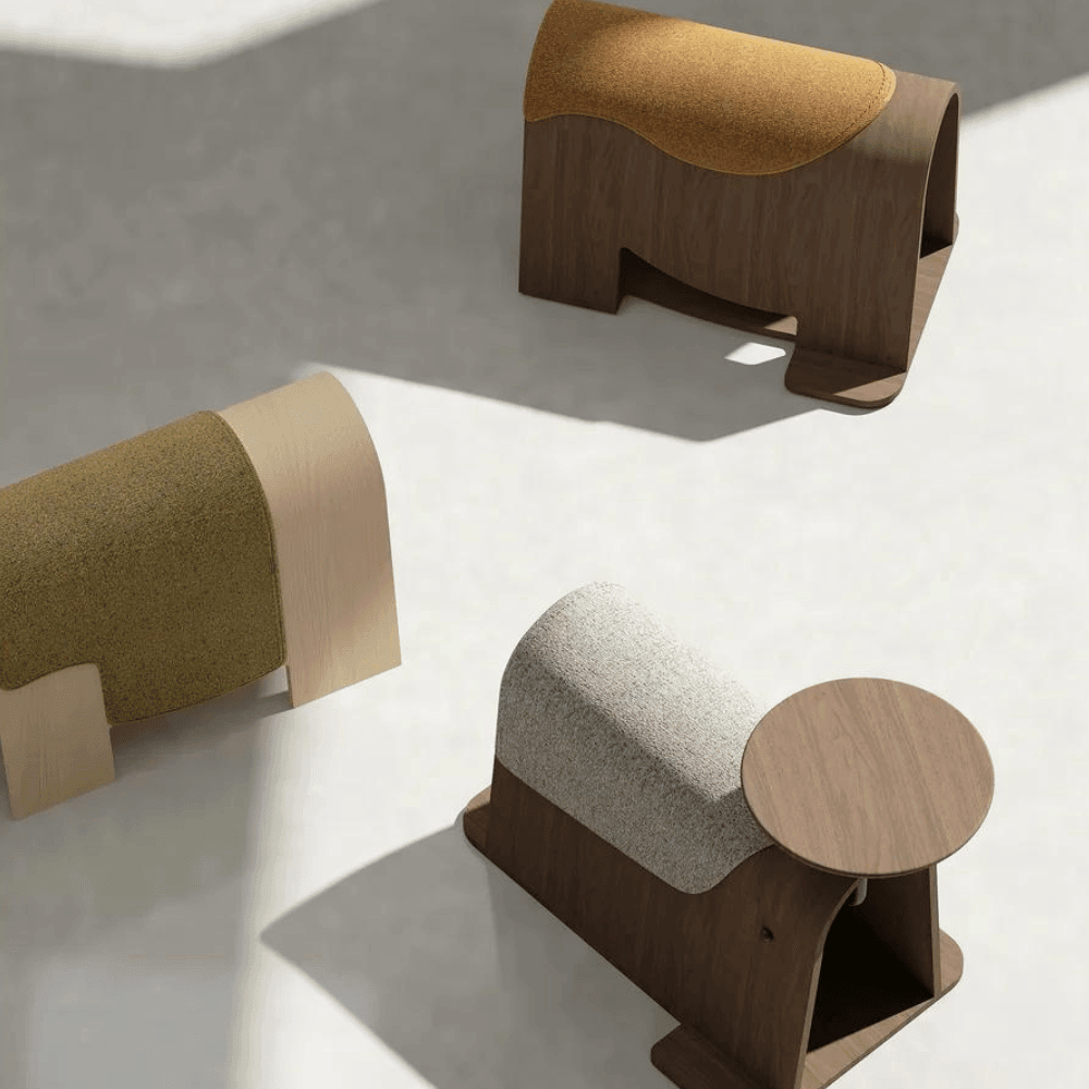 Le pouf tabouret Polignano en bois est conçu pour s’intégrer harmonieusement dans des espaces professionnels variés.