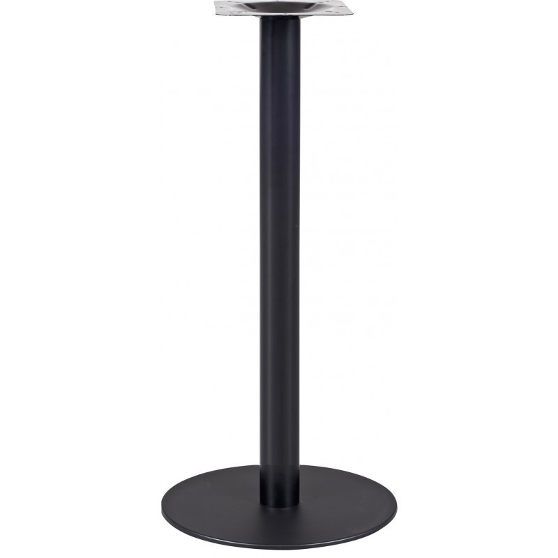 Le piètement repose sur une colonne tubulaire ronde en acier, assurant robustesse et stabilité. La finition noire mate époxy confère une résistance accrue aux chocs et à l’usure quotidienne. Le plateau, disponible avec différentes décorations, s’adapte aux ambiances variées tout en garantissant une excellente tenue dans le temps. Conçue pour un usage intérieur et extérieur, la table nécessite toutefois une protection contre le soleil et la pluie directe, notamment pour les plateaux aux teintes foncées.