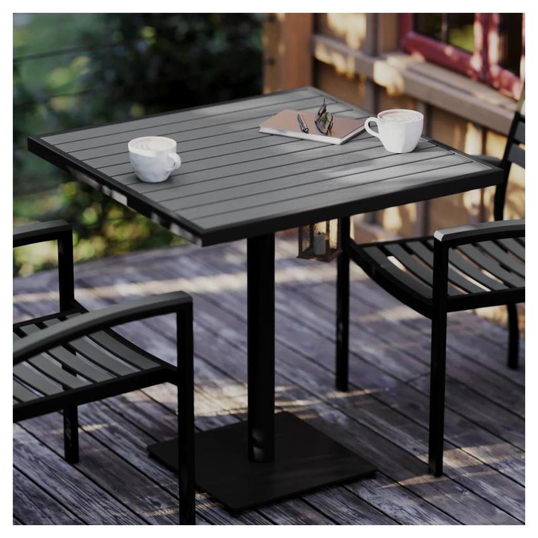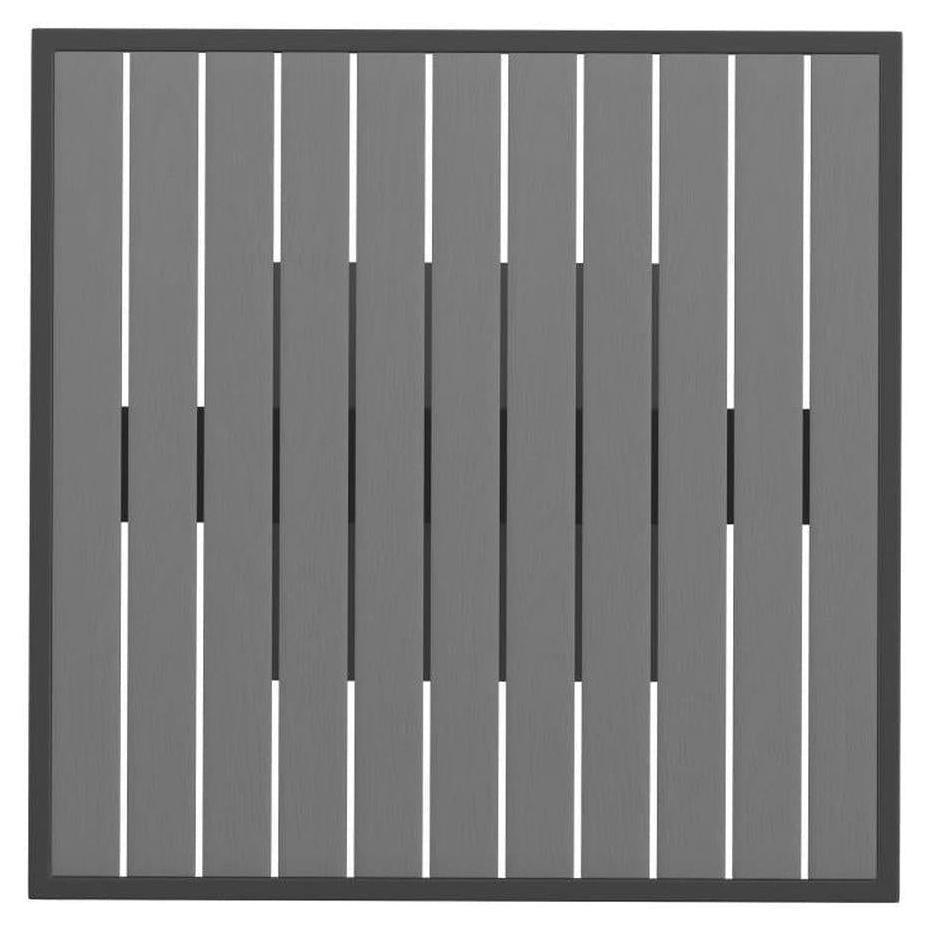 • Structure / matériaux : Sa structure en acier robuste est associée à un plateau en poly imitation teck, offrant une esthétique moderne et élégante,