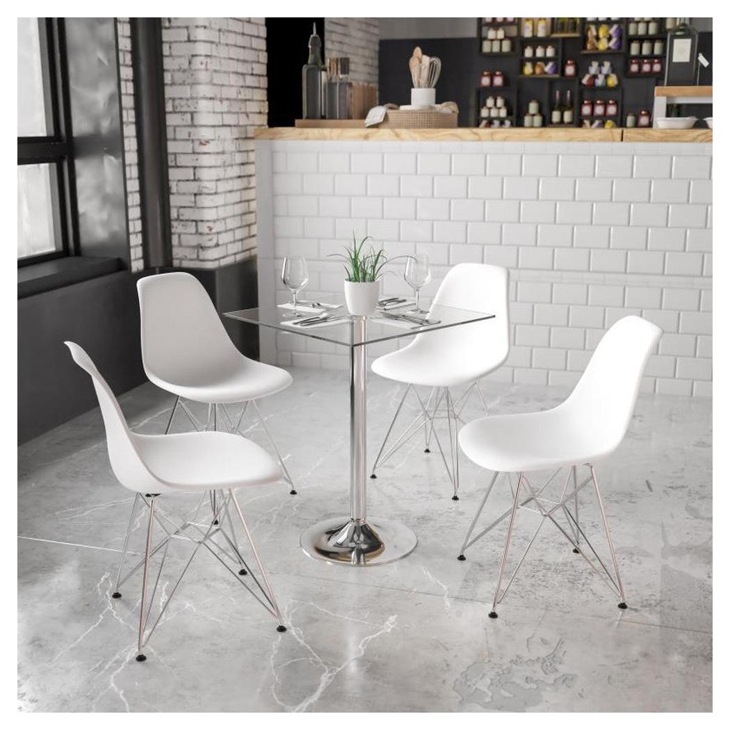 • Structure / matériaux : Son plateau en verre trempé de 8 mm d’épaisseur repose sur un piétement chromé, assurant à la fois robustesse et esthétisme,
