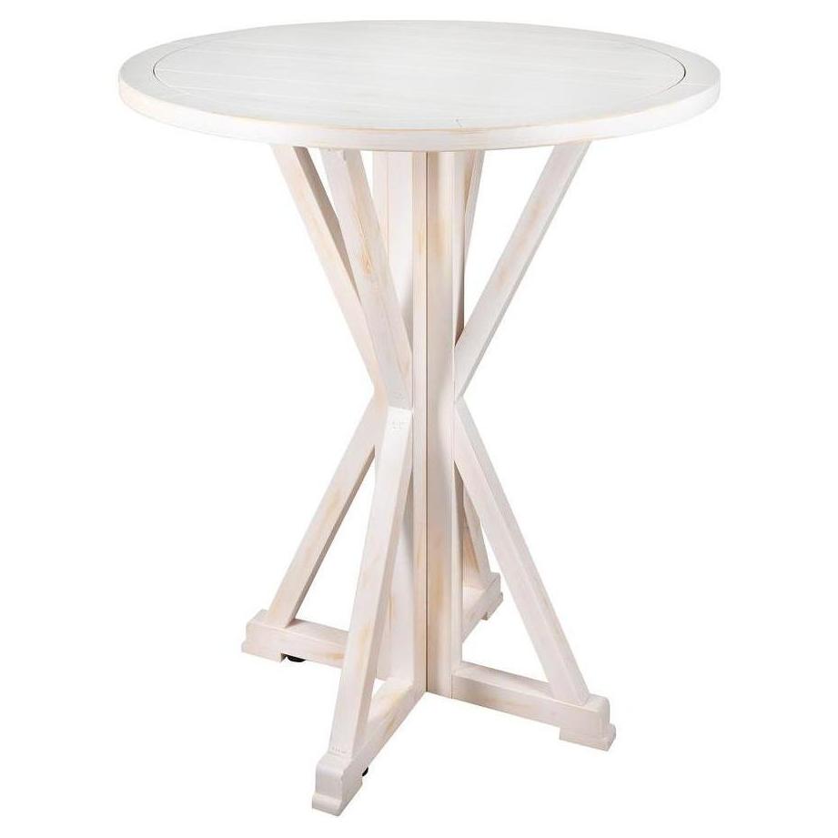Table cocktail fermière ronde Ø 91,4 cm finition blanche vieillie
