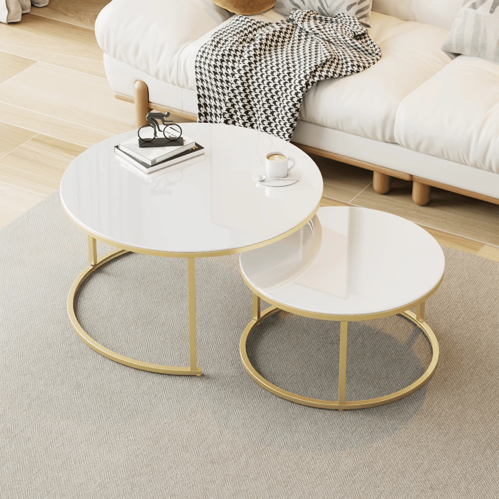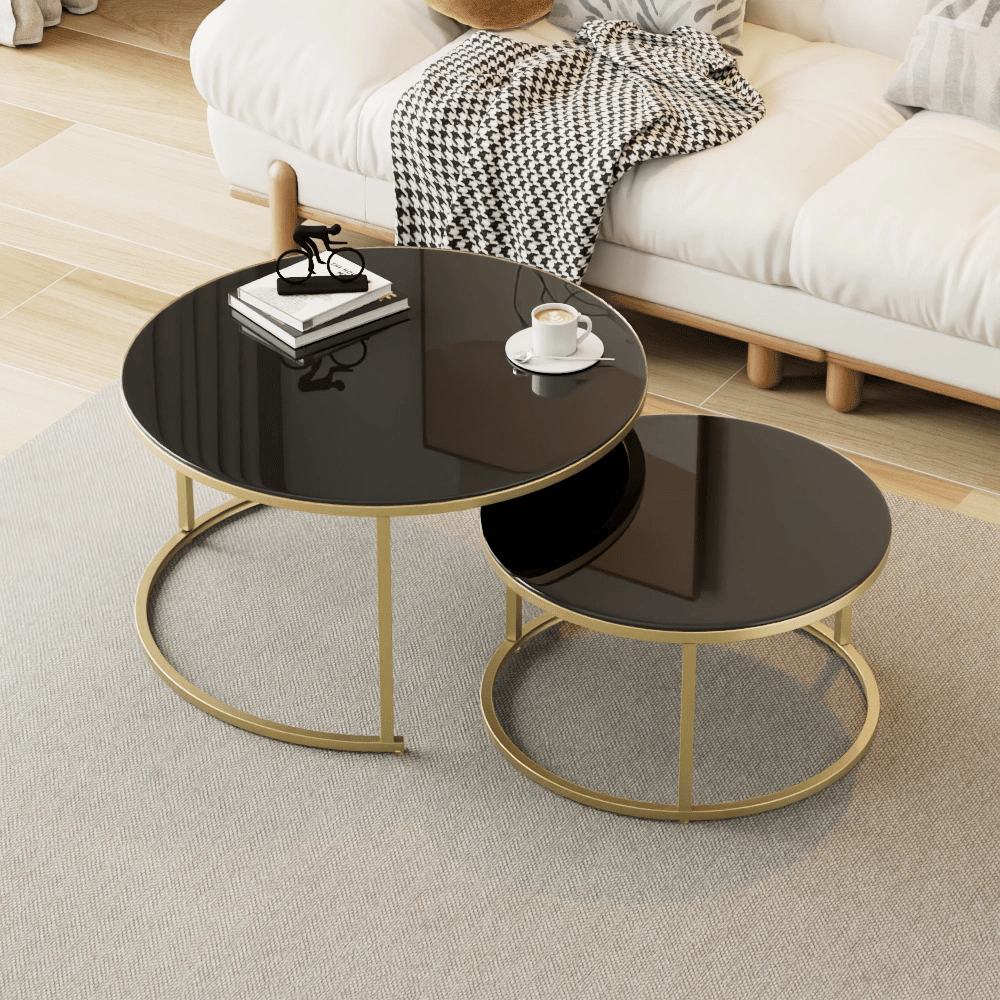 **Table d’appoint Porto ronde en verre trempé – configuration combinée luxe**