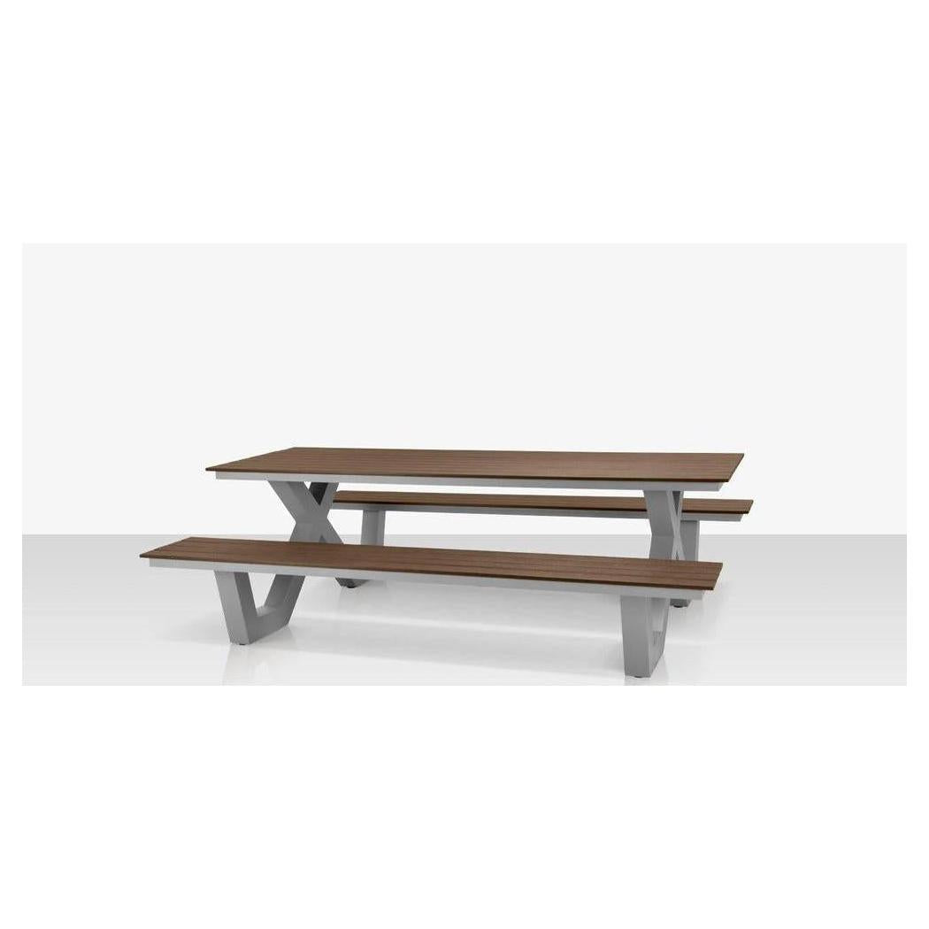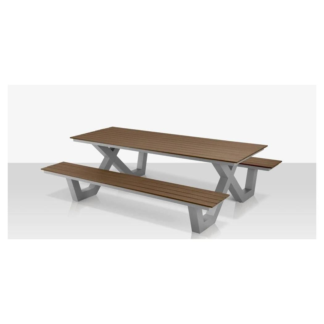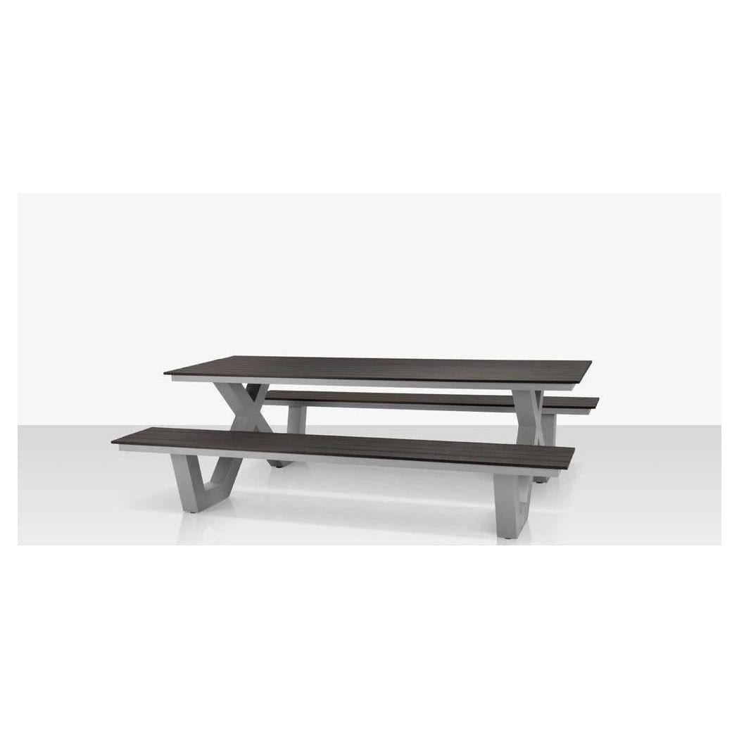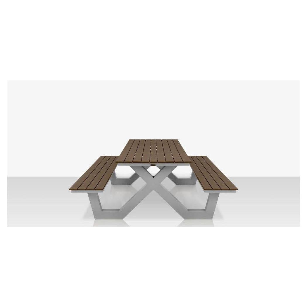 Cette table de pique-nique est conçue pour un usage extérieur, idéale pour les espaces de restauration ou les zones de détente,