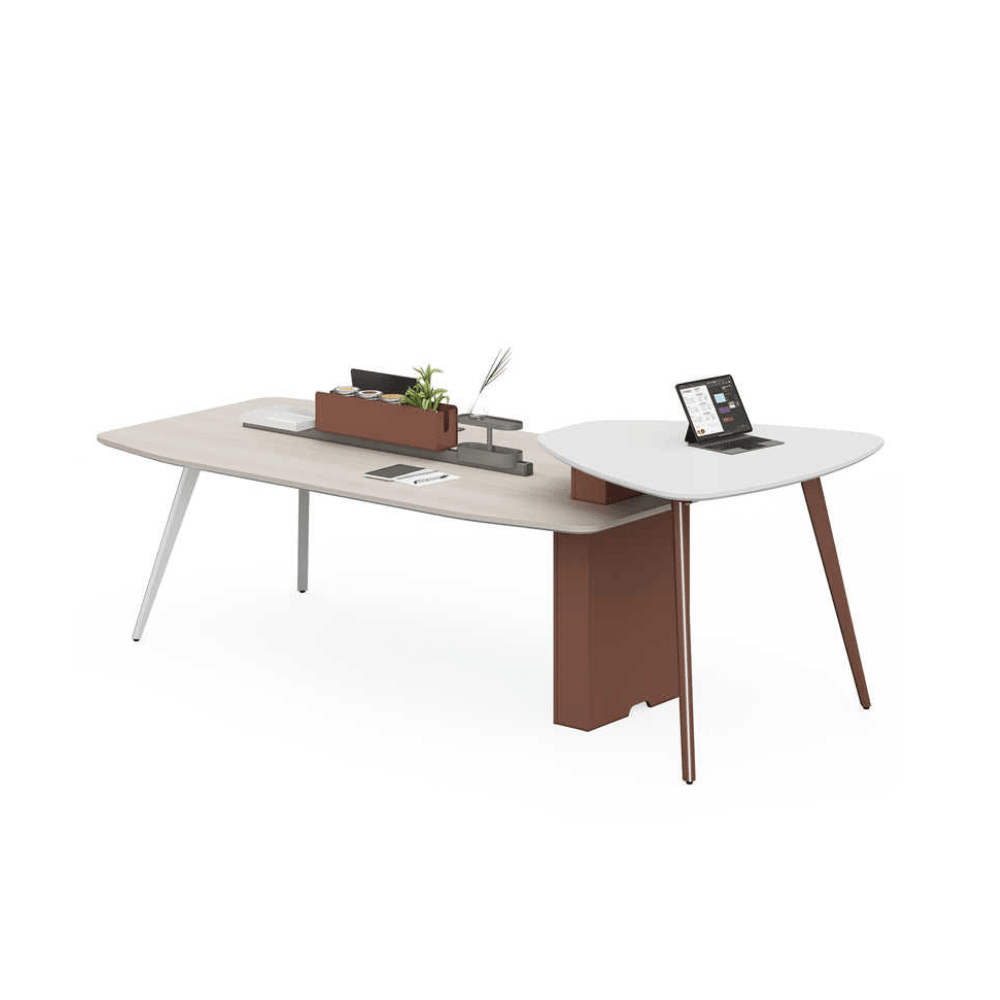 Cette table de conférence de 3 mètres est idéale pour des réunions de 2 à 4 personnes, s’intégrant parfaitement dans des environnements de bureaux, d’hôtellerie ou d’événements. Son design moderne et fonctionnel en fait un choix pertinent pour les espaces de travail contemporains. Un petit plateau d’appoint permet d’accueillir un ordinateur portable ou un projecteur, ajoutant une touche de praticité.