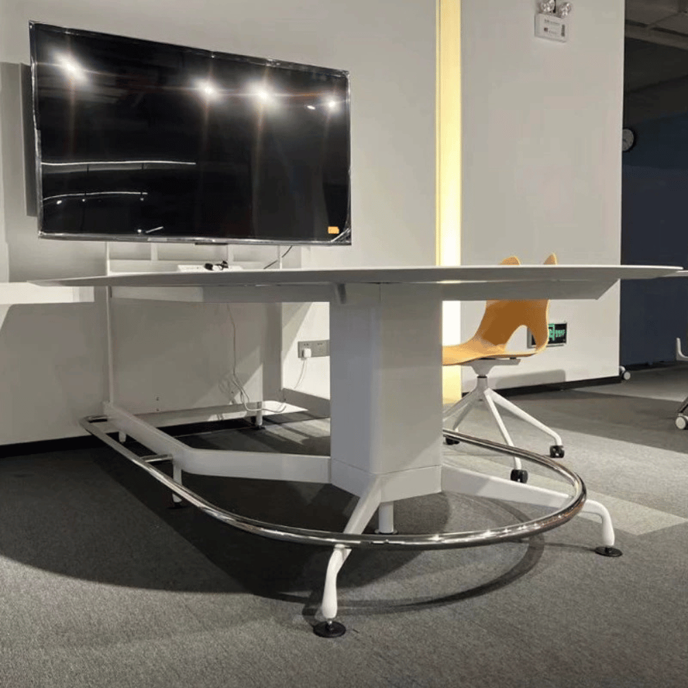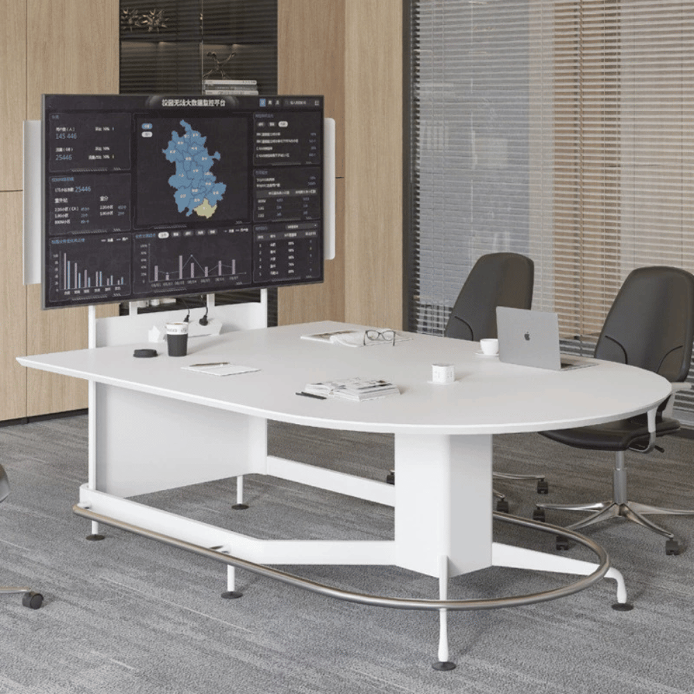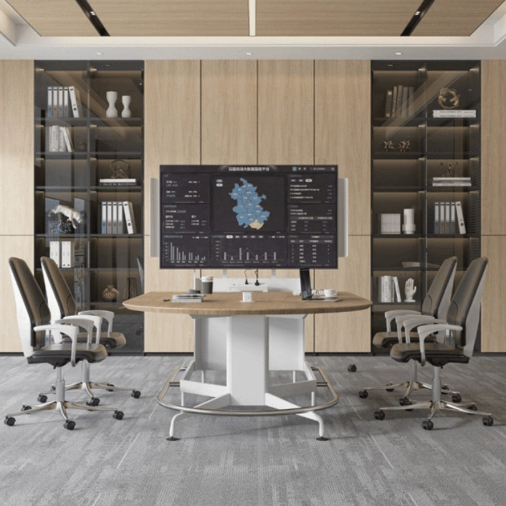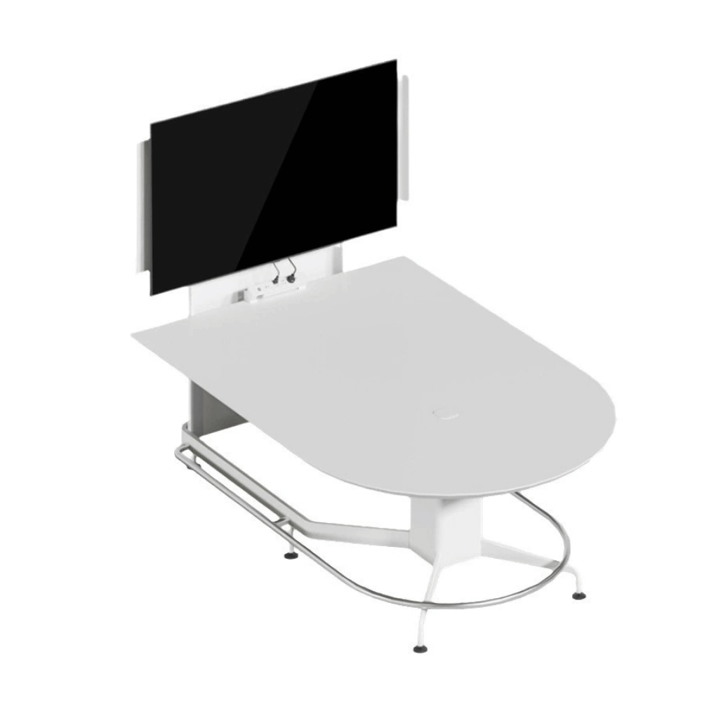 Cette table de réunion multimédia est conçue pour optimiser les espaces professionnels en alliant fonctionnalité et esthétique.