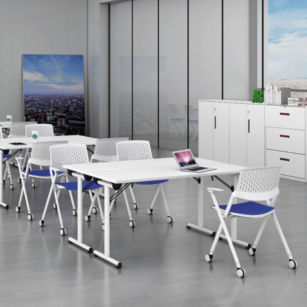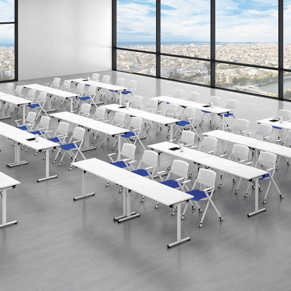 Cette table pliante est idéale pour les environnements de travail tels que les bureaux, les salles de formation et les espaces de coworking. Sa conception polyvalente permet une utilisation dans divers contextes, allant des réunions aux événements temporaires. Son design épuré s’intègre harmonieusement dans tout type d’aménagement.