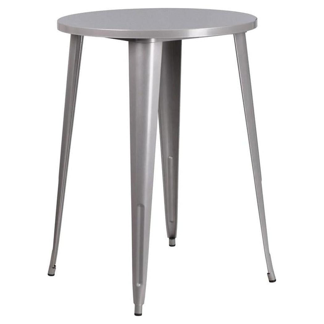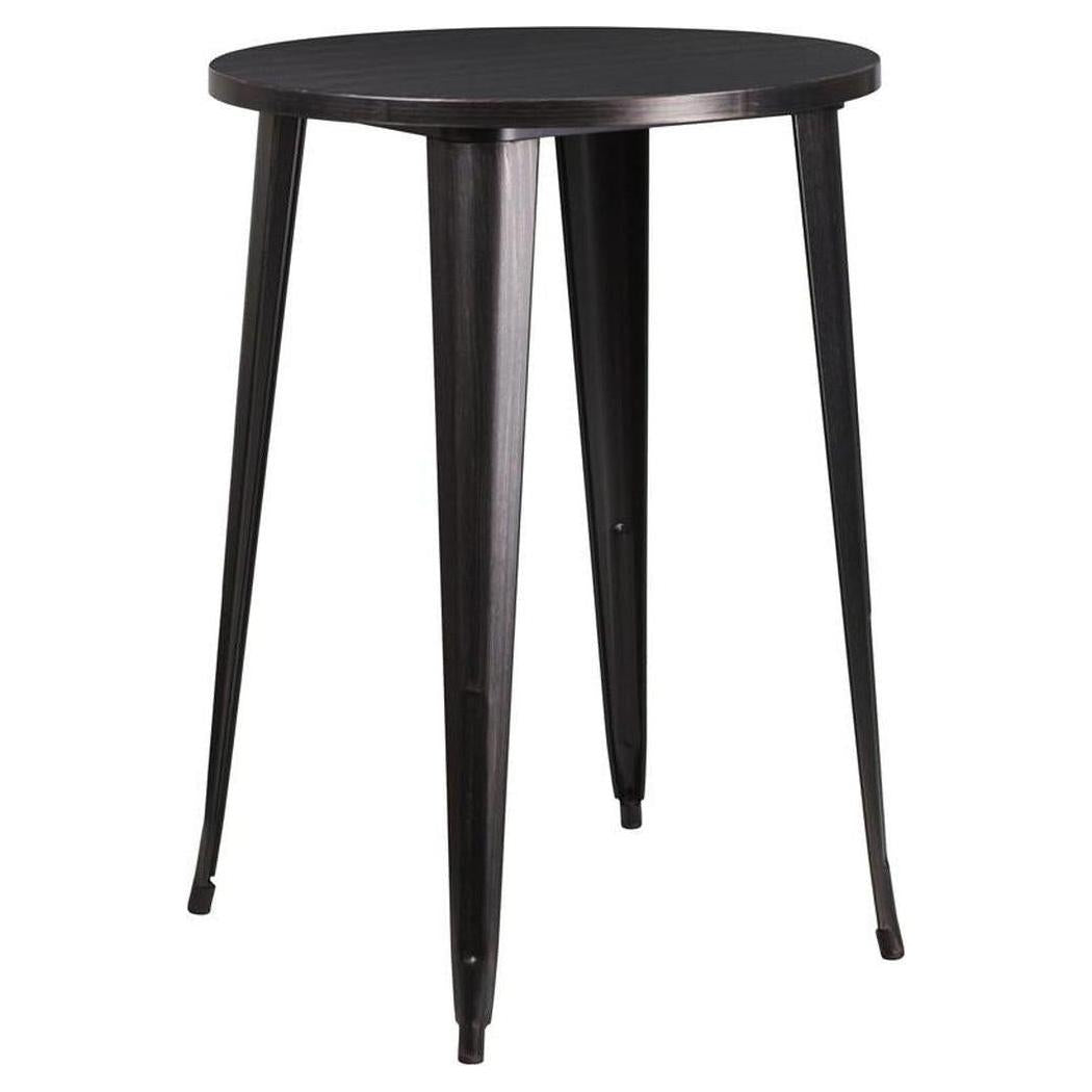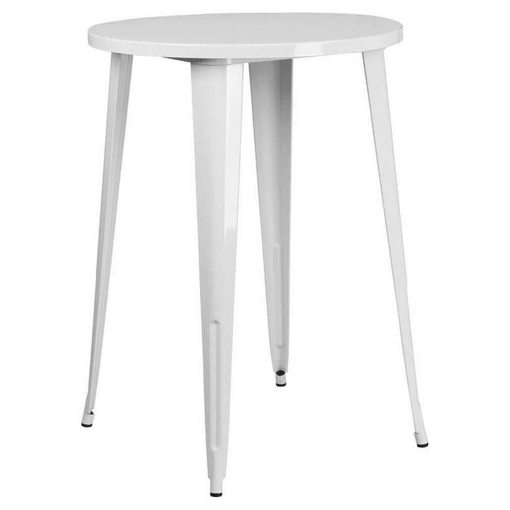 Cette table ronde en métal est conçue pour un usage professionnel, idéale pour les espaces de restauration modernes,