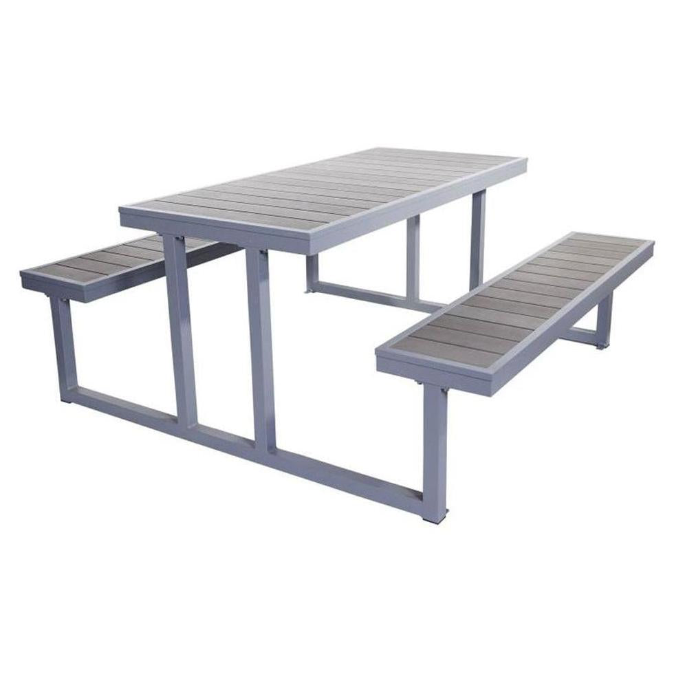 Cette table de pique-nique extérieure allie modernité et fonctionnalité,