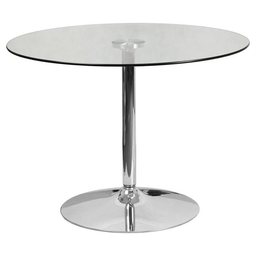 Cette table ronde avec plateau en verre est conçue pour apporter une touche moderne à votre espace professionnel,