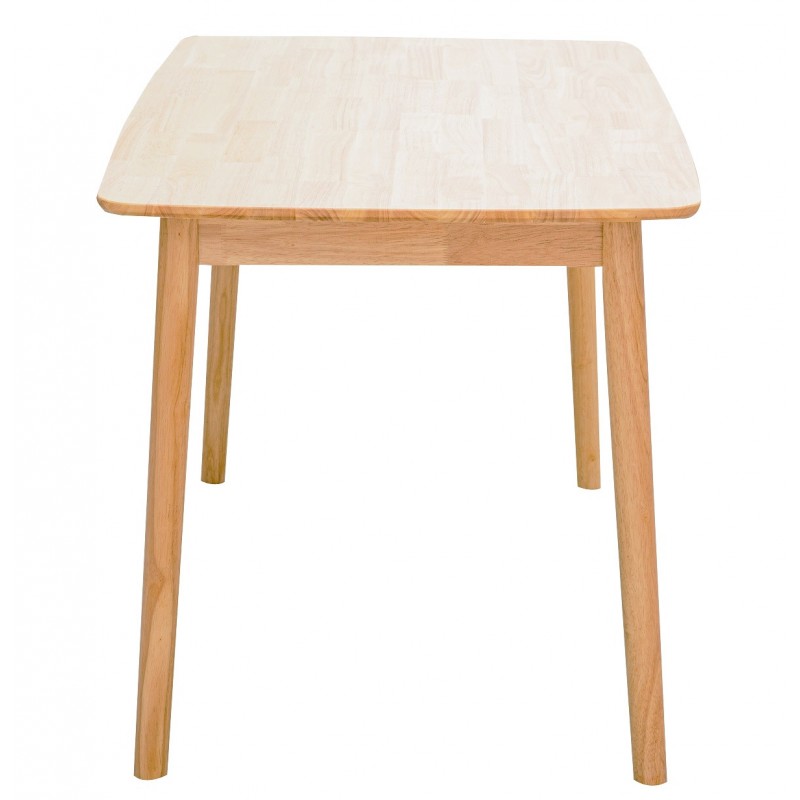 La structure repose sur un cadre en bois d’hévéa massif, garantissant robustesse et durabilité dans le temps. Le plateau est réalisé en placage bois, offrant une surface élégante et résistante. La finition naturelle met en valeur la beauté du bois tout en conservant un aspect chaleureux et authentique.