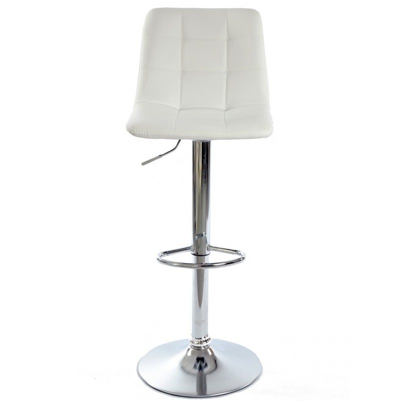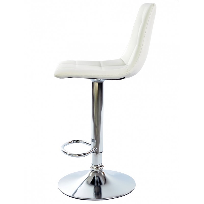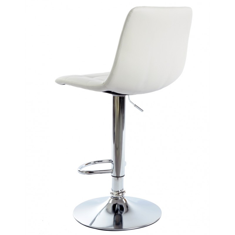 Le piètement en métal chromé assure robustesse et stabilité tout en apportant une touche contemporaine. L’assise recouverte de similicuir blanc offre un entretien facilité et un confort optimal. La structure intègre un repose-pieds qui améliore le confort lors d’une utilisation prolongée. Le tabouret bénéficie d’un système de réglage en hauteur, adapté aux différentes configurations de comptoir ou bar.