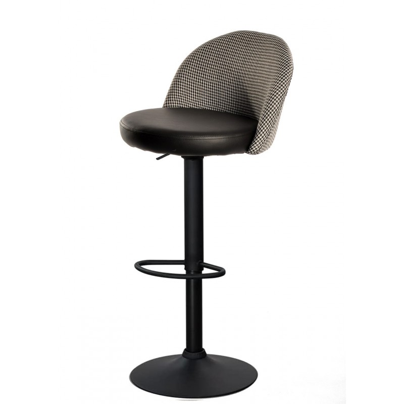 Tabouret de bar Bunden réglable, structure en métal noir, assise tapissée pied-de-poule et noir