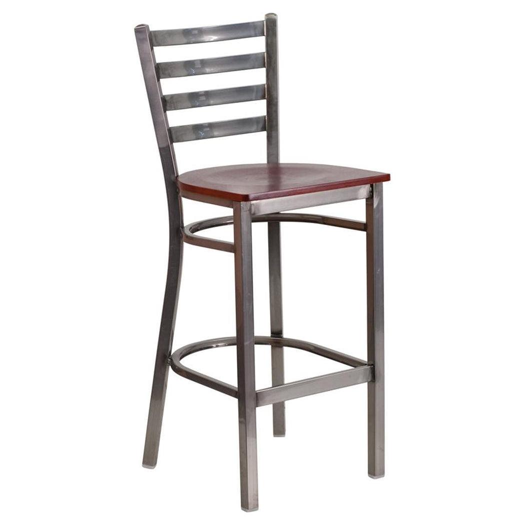 Tabouret de bar de restaurant TITAN Series finition vernis clair à dossier échelle