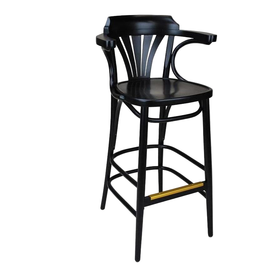Tabouret de bar en bois cintré avec dossier éventail et accoudoirs