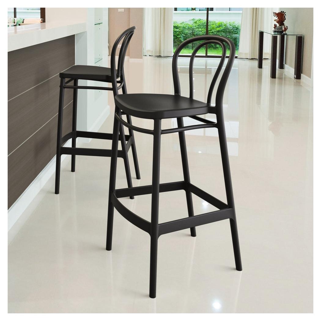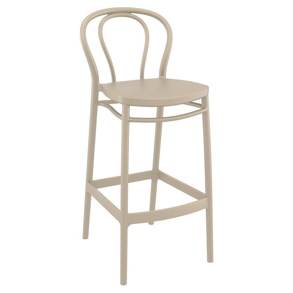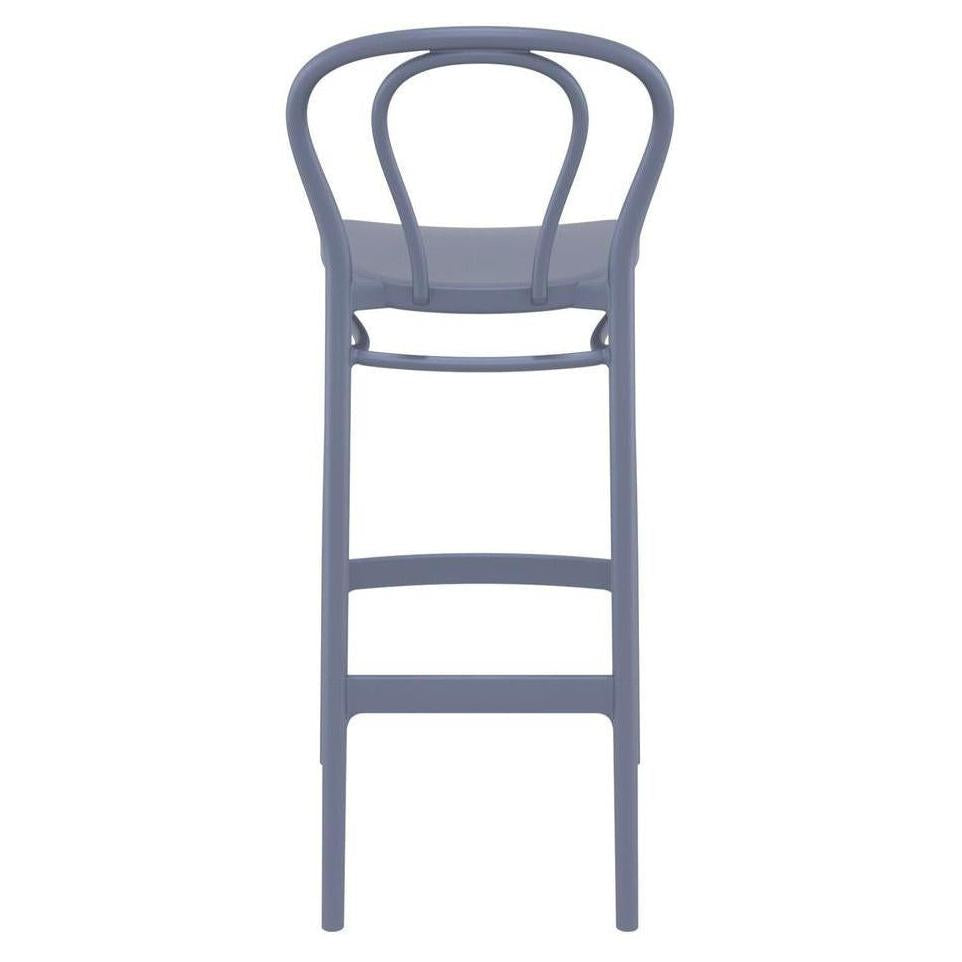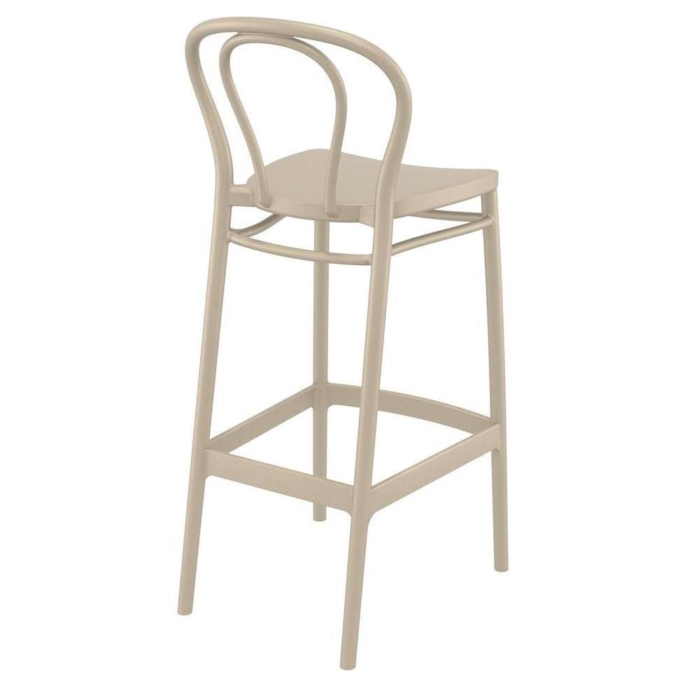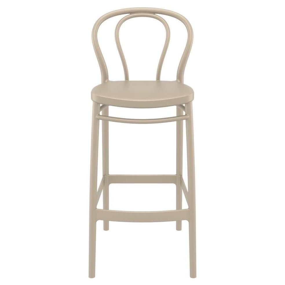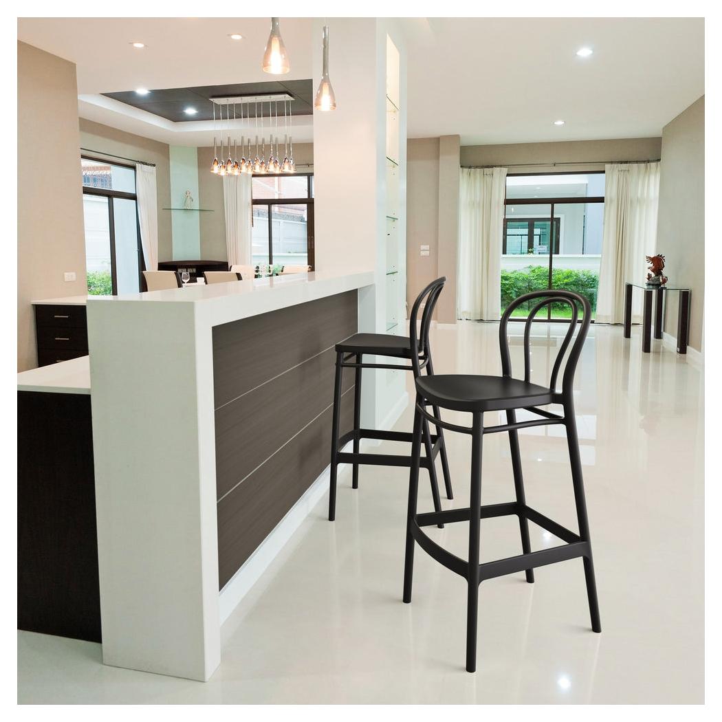 Ce tabouret de bar est conçu pour un usage extérieur, alliant fonctionnalité et esthétique classique,