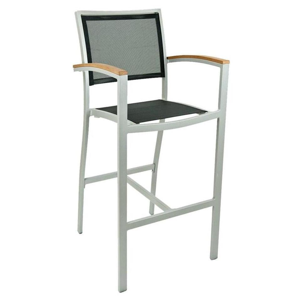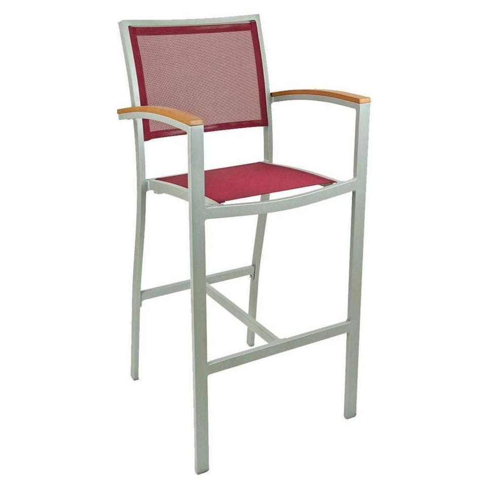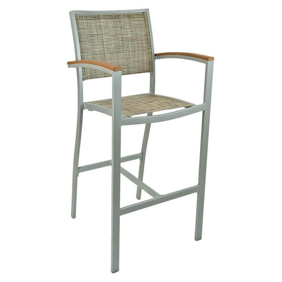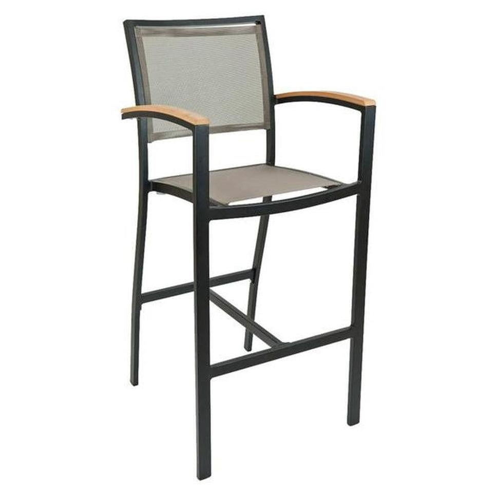 Tabouret de bar extérieur avec structure aluminium, accoudoirs et dossier textile