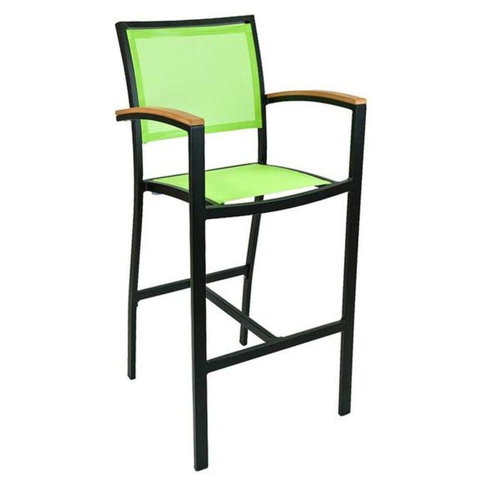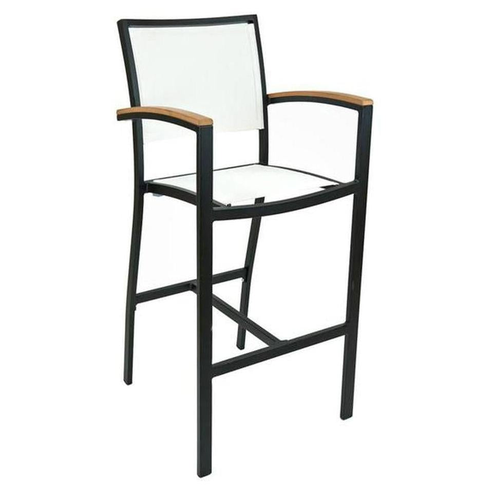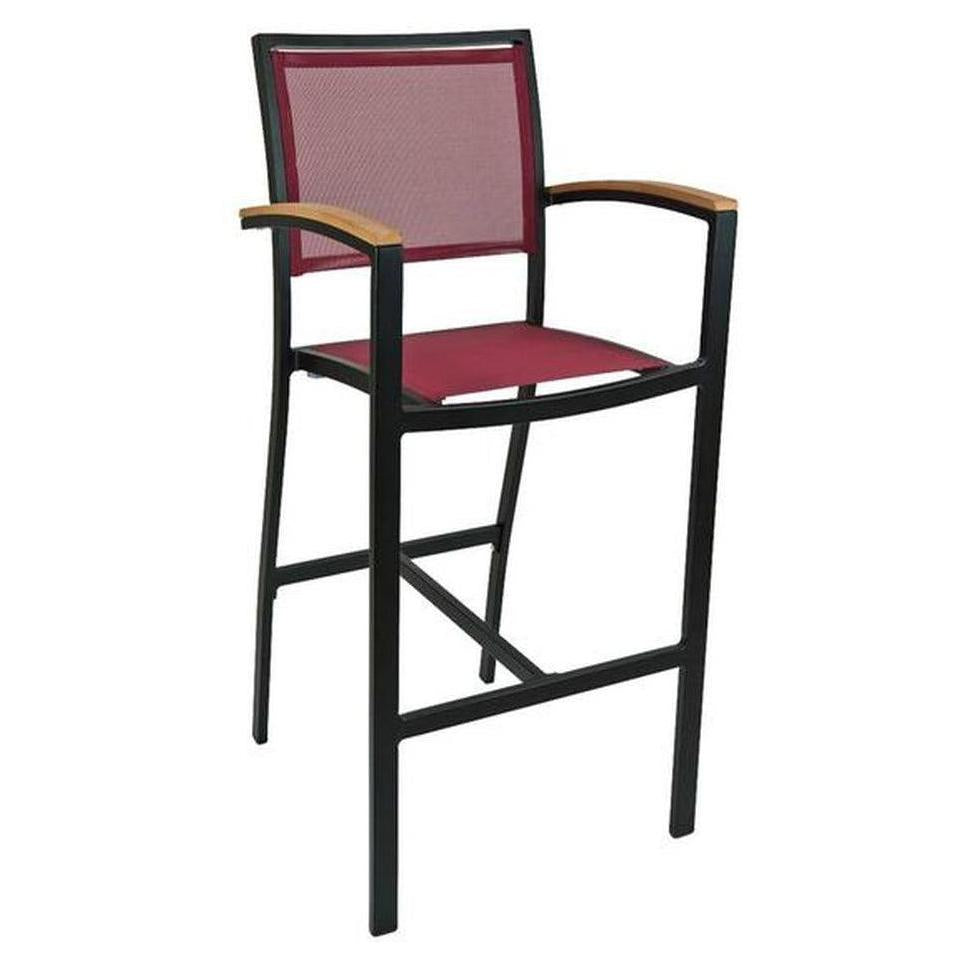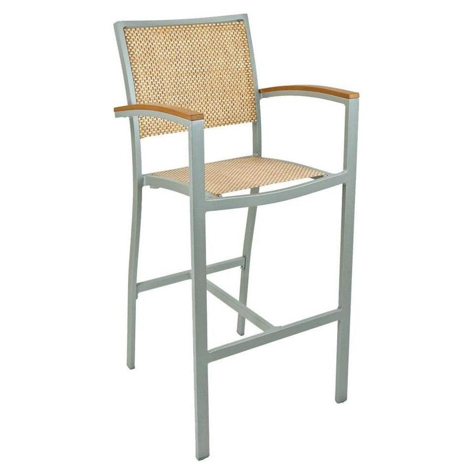 Tabouret de bar extérieur avec structure aluminium, accoudoirs et dossier textile