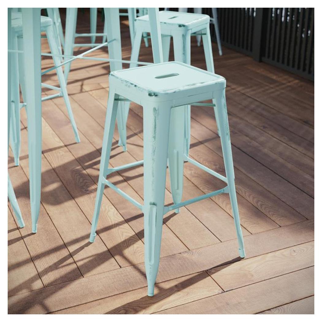 Ce tabouret de bar est conçu pour un usage intérieur ou extérieur, offrant une solution pratique et esthétique pour les espaces de restauration,