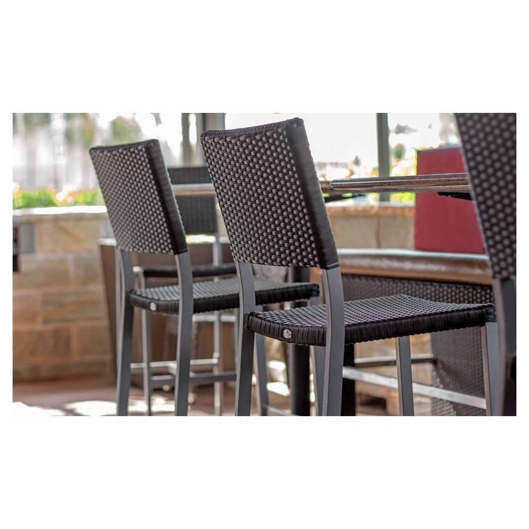 Ce tabouret de bar est conçu pour un usage extérieur, alliant confort et praticité,