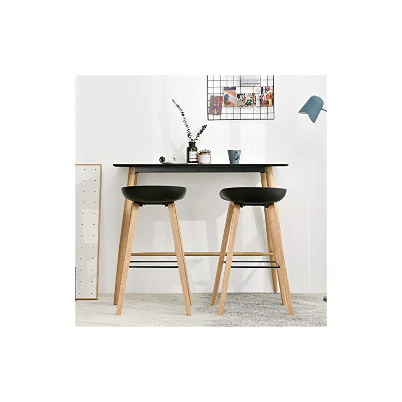L’assise en polypropylène noir assure robustesse et facilité d’entretien, tandis que les quatre pieds en métal garantissent une excellente stabilité. Chaque pied bénéficie d’une finition en époxy imitant le bois, apportant une touche élégante et chaleureuse au design. Ce mariage de matériaux confère au tabouret une grande résistance aux contraintes d’usage tout en conservant une légèreté appréciable.