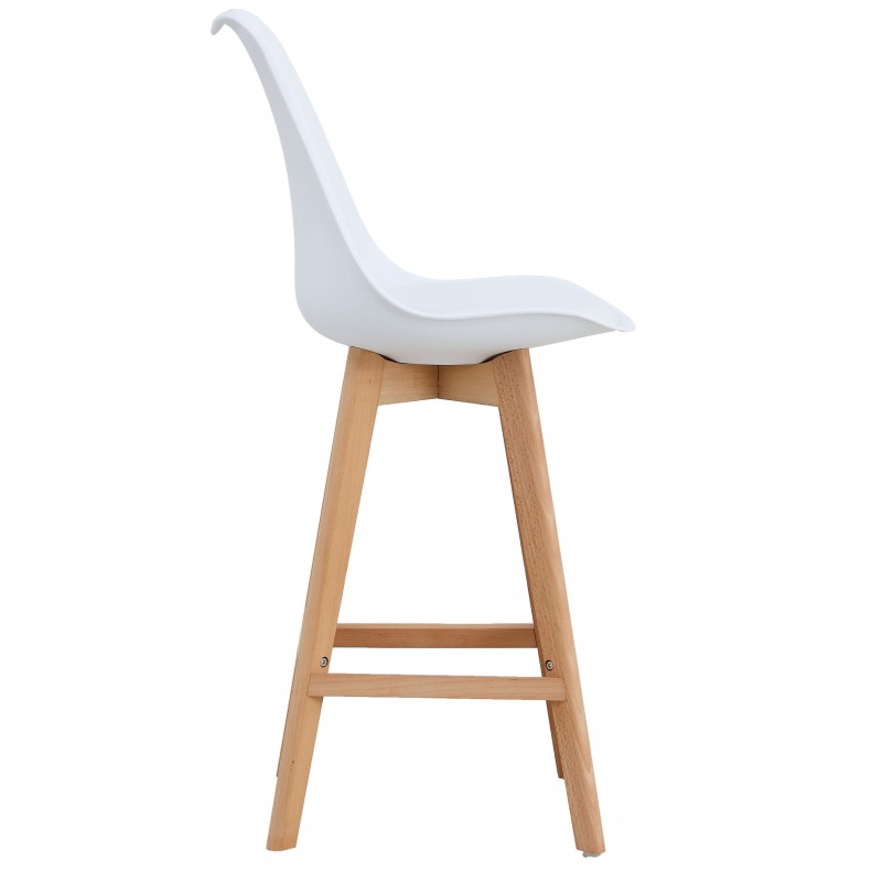 Tabouret de bar Mille, structure en bois, coque en polypropylène et assise rembourrée blanche