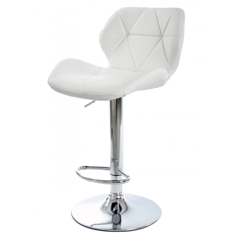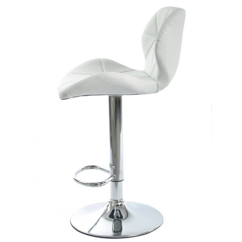 Le piètement en métal chromé assure robustesse et stabilité tout en apportant une touche contemporaine. L’assise recouverte de similicuir blanc offre un entretien facile et un confort durable. La base chromée est équipée d’un repose-pieds intégré, facilitant l’assise prolongée. Le réglage de la hauteur s’effectue par vérin à gaz, garantissant une adaptation rapide et précise.