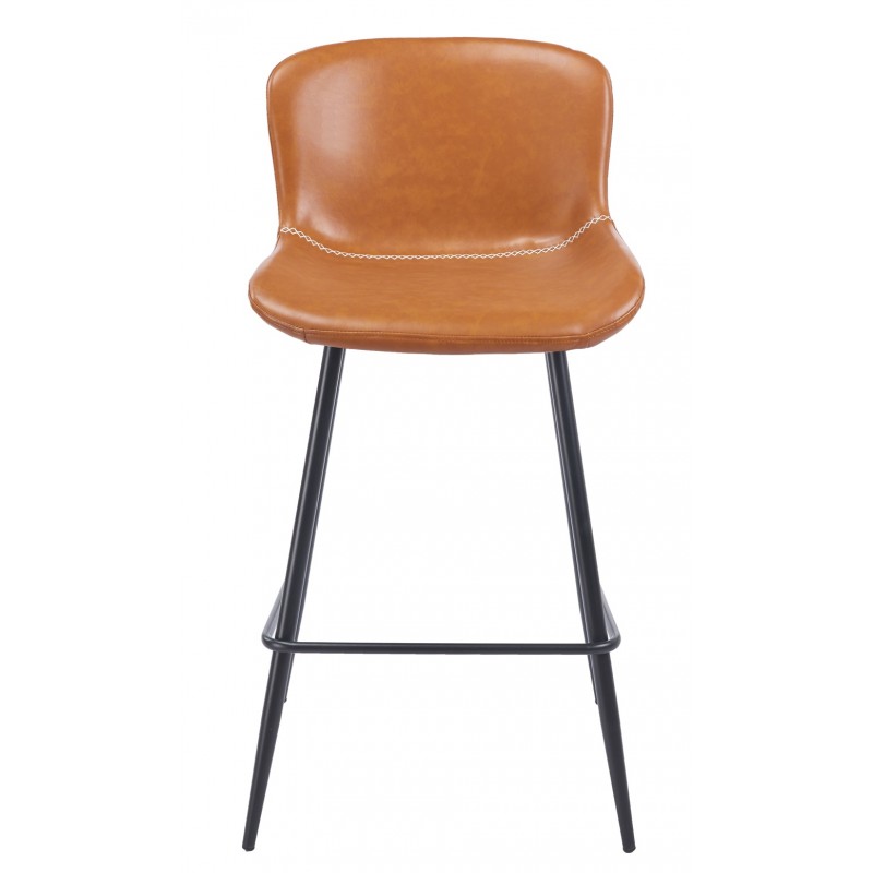 Tabouret de bar Sergi, structure en métal, assise en similicuir effet vintage marron