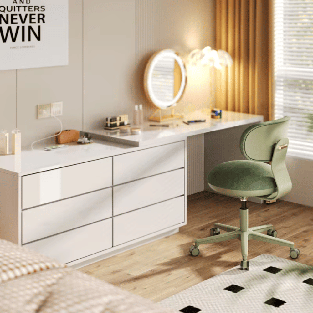 Ce tabouret est idéal pour les environnements de travail tels que les bureaux, les salons de beauté ou les espaces de maquillage. Son design moderne et raffiné s’intègre parfaitement dans des contextes variés, offrant une assise confortable pour des sessions prolongées. Sa compacité le rend également adapté aux espaces restreints, facilitant la mobilité des professionnels.