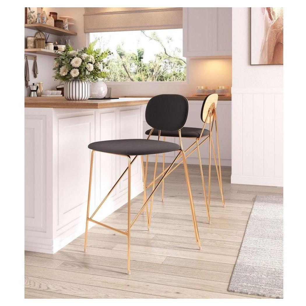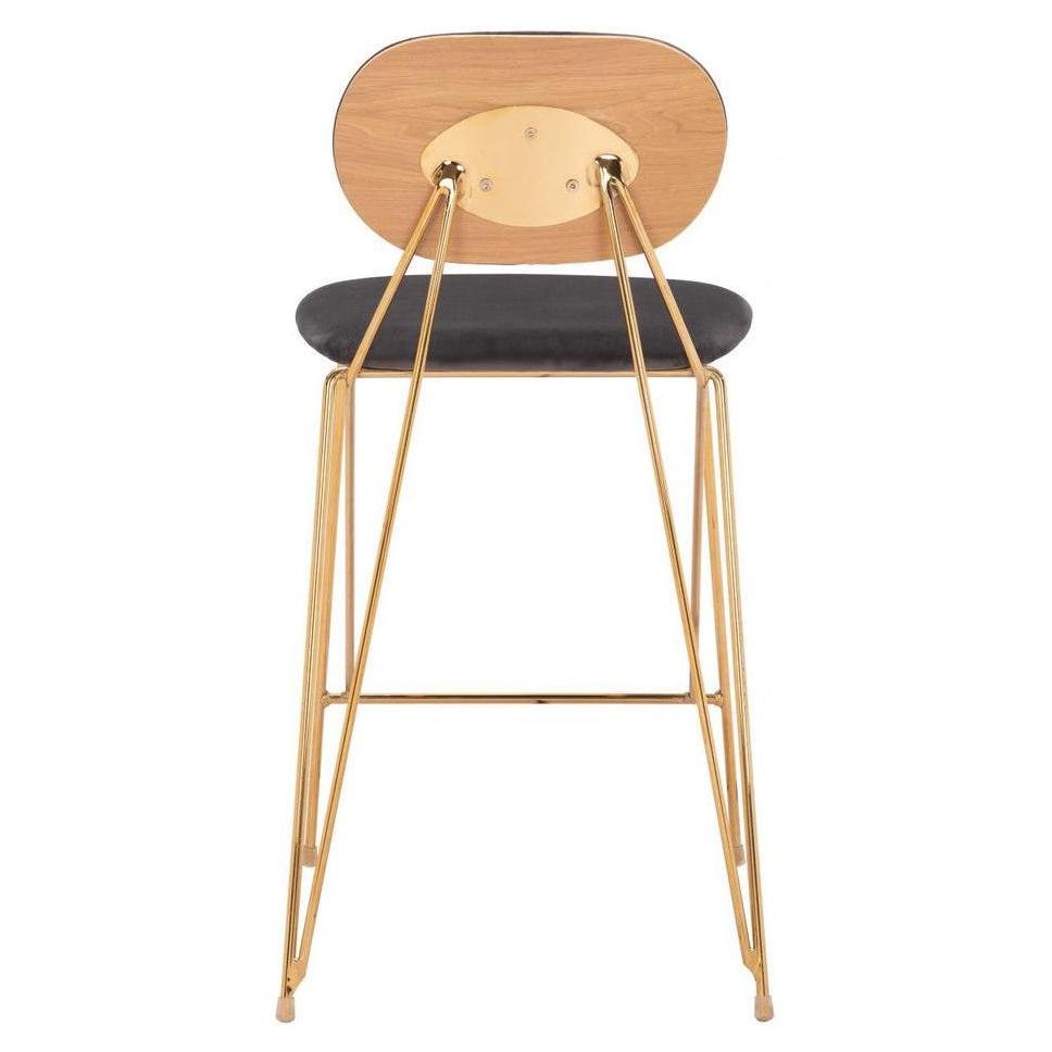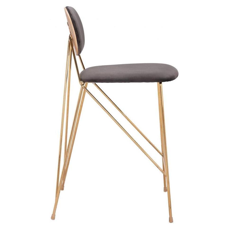 Ce tabouret de comptoir présente un design alliant modernité et éléments décoratifs, adapté aux espaces résidentiels ou de restauration,