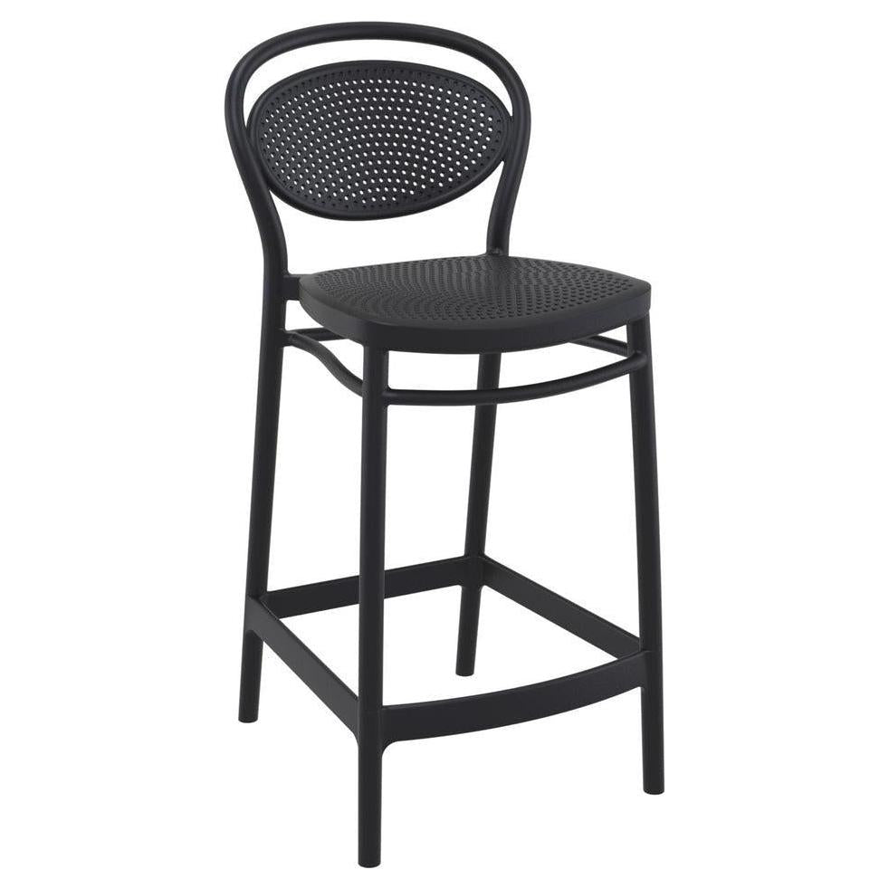 Ce tabouret haut est conçu pour un usage extérieur, alliant fonctionnalité et esthétique classique,