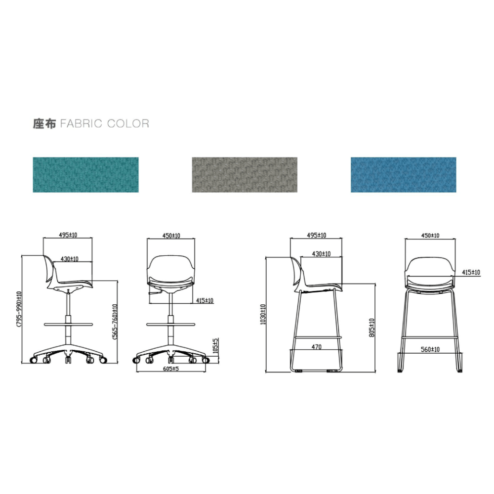 Le tabouret présente un rendu soigné avec un toucher agréable, alliant confort et durabilité. Sa conception robuste est pensée pour résister à une utilisation quotidienne dans des environnements professionnels.