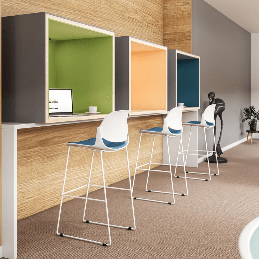 Conçu pour les environnements de travail tels que les bureaux, les espaces de coworking, ou les zones de lounge, ce tabouret s’intègre parfaitement dans des contextes CHR et hôteliers. Il offre une assise confortable pour des moments de convivialité ou de travail. Sa conception s’adapte aussi bien aux espaces informels qu’aux ambiances plus sophistiquées.