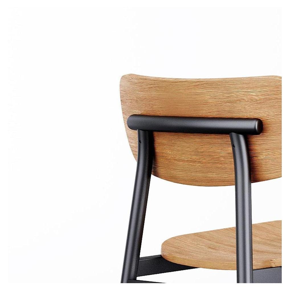 • Structure / matériaux : Sa base est en tubes d’acier épais, tandis que l’assise et le dossier sont en contreplaqué moulé avec un revêtement en chêne blanc américain,
