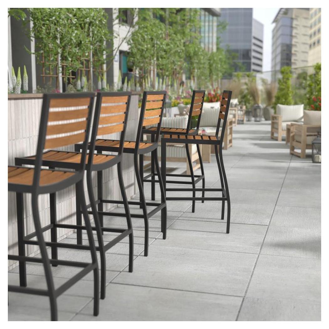 Ce tabouret de bar extérieur est conçu pour un usage en extérieur, offrant une solution pratique et esthétique pour les espaces de restauration ou de détente,